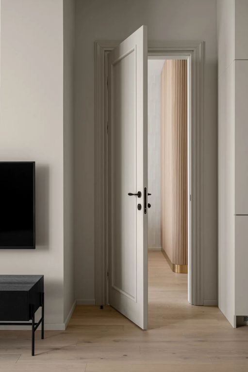 極致簡(jiǎn)約的造型,高度的色彩凝練,將木門作為空間設(shè)計(jì)的入口,讓木門、墻板、家具飾面效果一體化,是家居空間的點(diǎn)睛之筆。